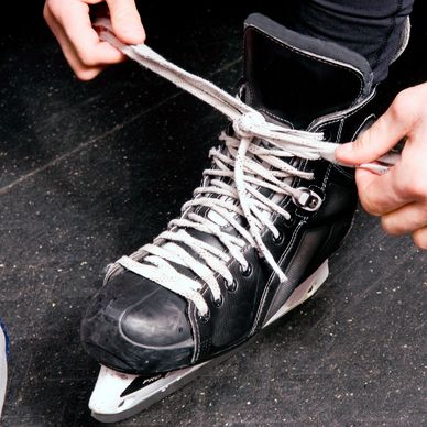 With so much equipment, it is important to label it, with an initial or name. Pro tip: Write your child's name on a square of brightly colored tape so they can be easily spotted by you while they are on the ice. Brightly colored laces will also help too.
